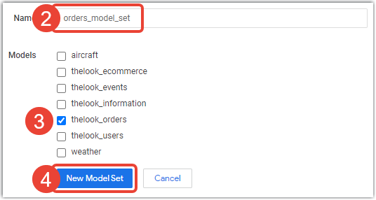 Looker displays the New Model Set page. Enter a name for the new model set.