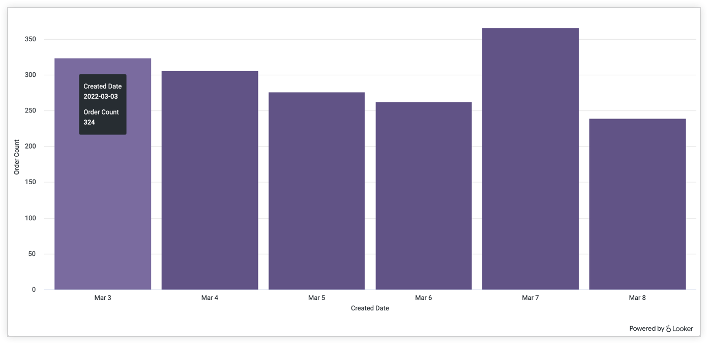 - Explore from Here: Use the Look (using the Look's gear menu) or a dashboard tile (using the tile's three-dot icon) as a starting point to further explore your data. See the Viewing and interacting with Explores in Looker and Editing user-defined dashboards documentation pages for more information.